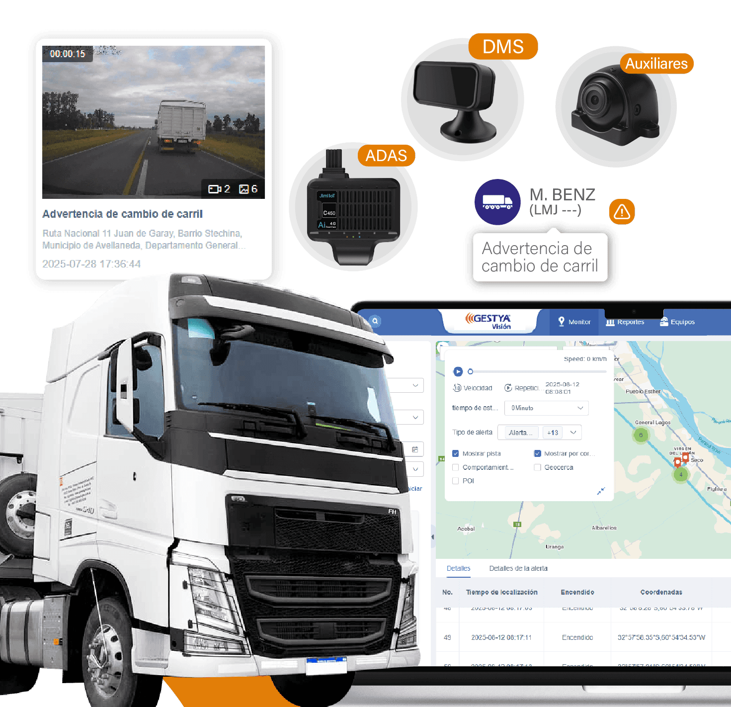 A través de tecnología ADAS, DMS y cámaras auxiliares, permite detectar situaciones de riesgo, monitorear el entorno y al conductor, y contar con información objetiva en tiempo real.